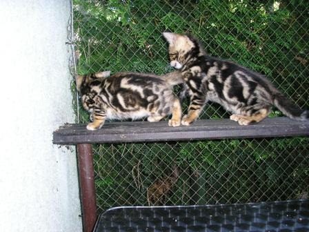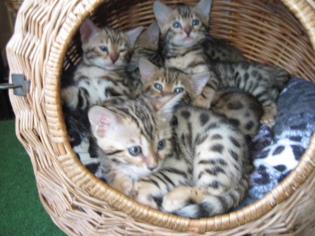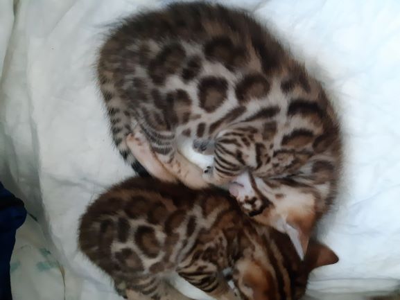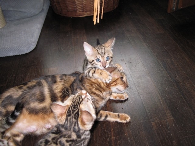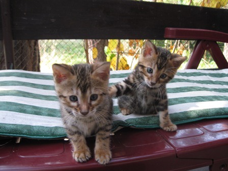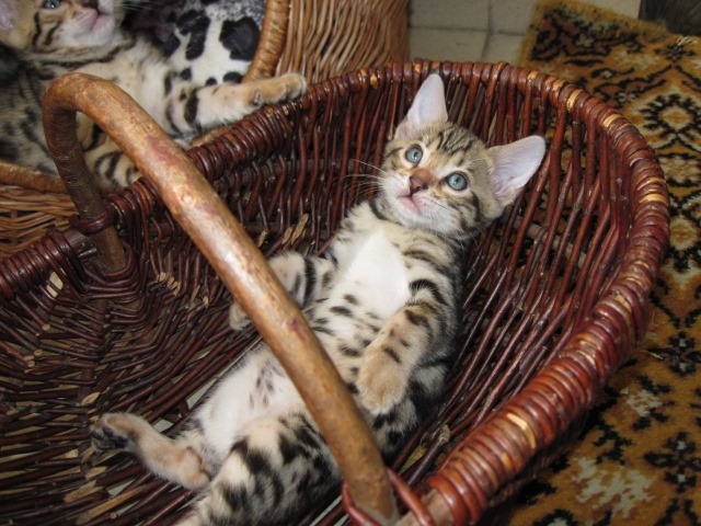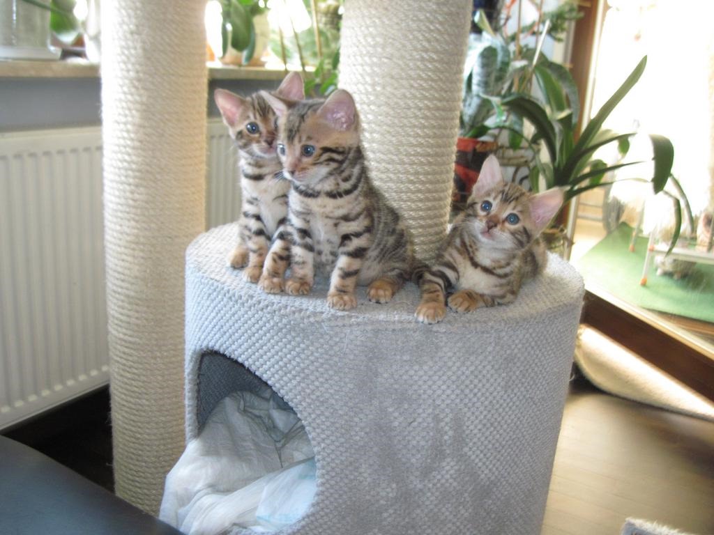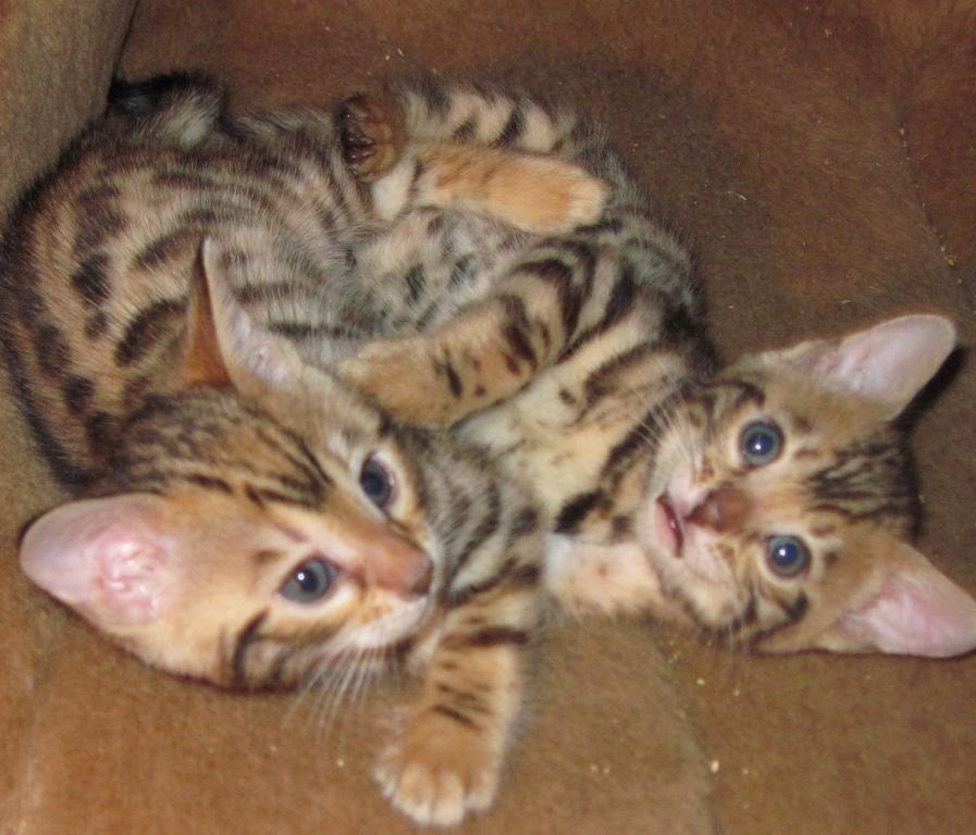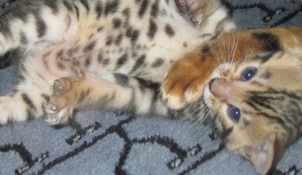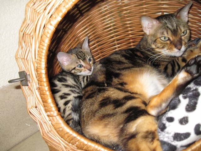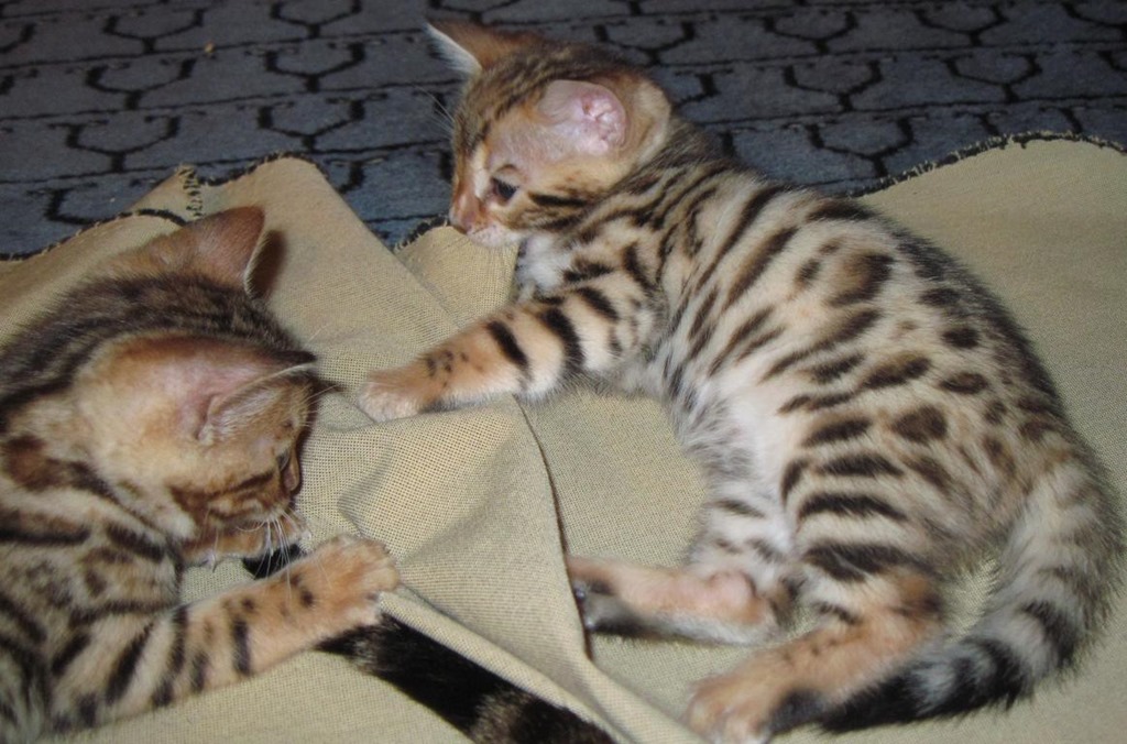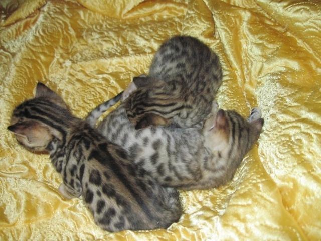 Moje koteczki Dolly i Clinia urodziły w lutym i marcu 2013 kocięta. Są trzy dziewczynki i dwóch chłopców. Maść kociąt to black marbled i brown spotted. Ojcem kociąt jest Europejski Champion /S.C./ Tamleopardens Divine, pochodzący z wiodącej linii skandynawskiej; natomiast ojcem koteczek jest CH Mountainpark Sunshine, co oznacza, że kocięta wywodzą się z doskonałych linii – kanadyjskiej i skandynawskiej.