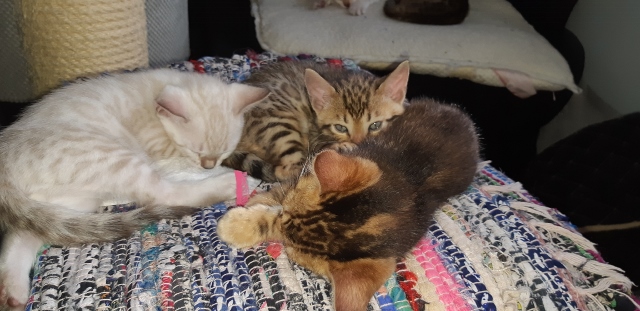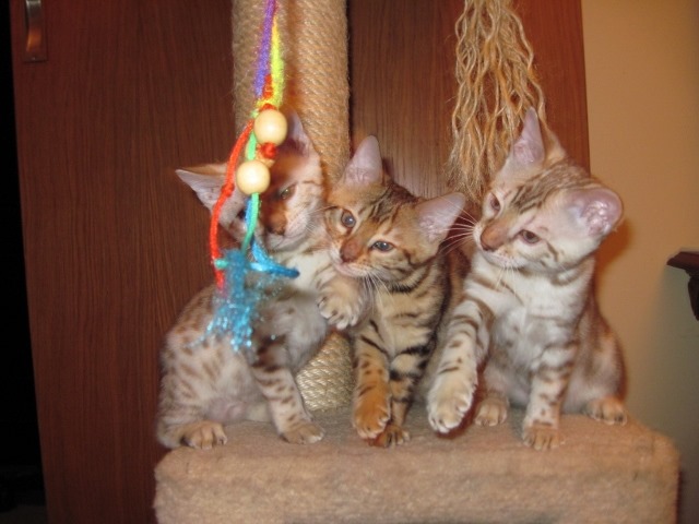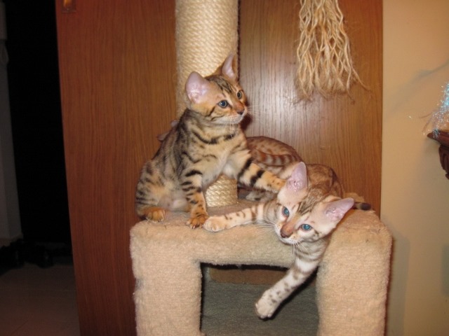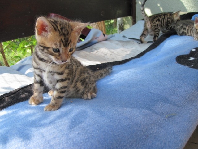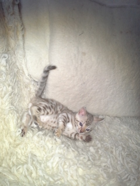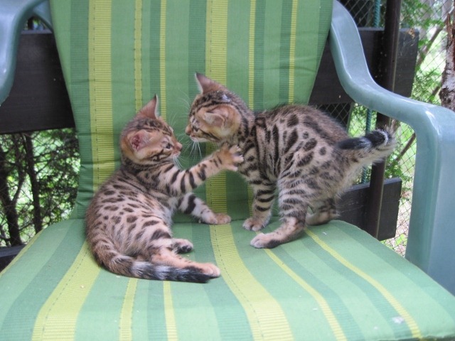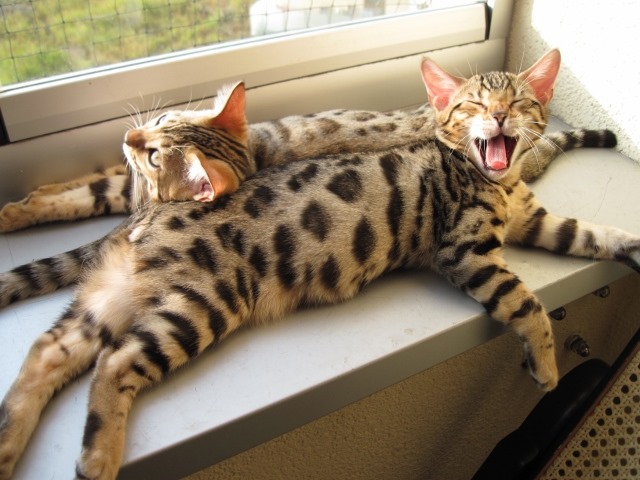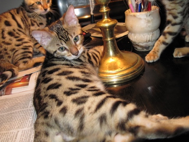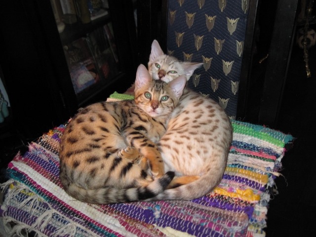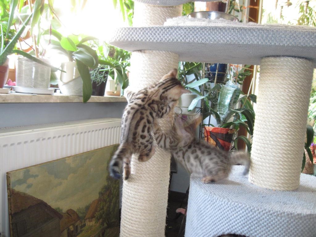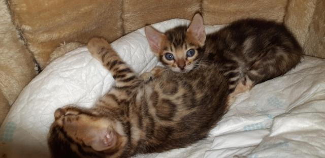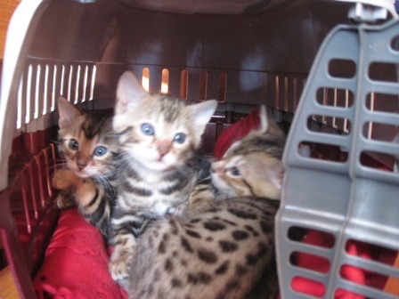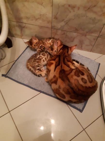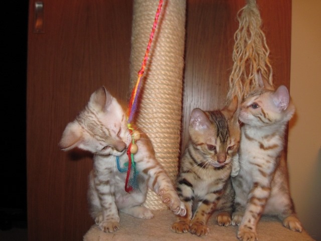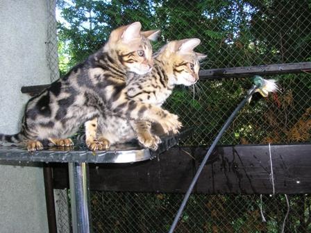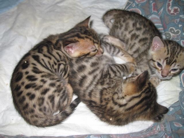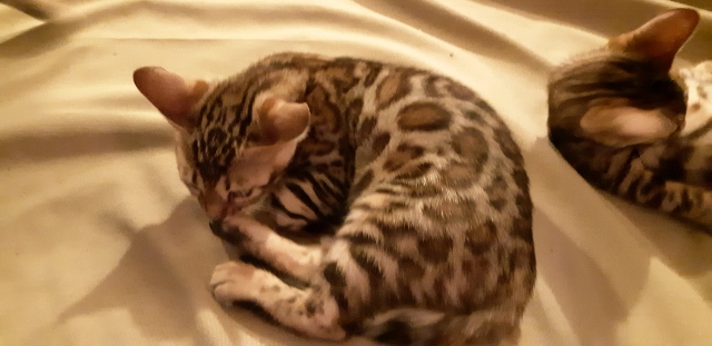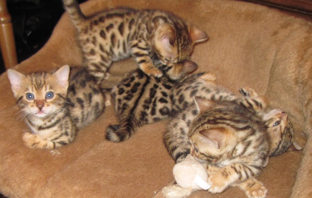 Moje koteczki Dolly i Clinia urodziły w lutym i marcu 2013 kocięta. Są trzy dziewczynki i dwóch chłopców. Maść kociąt to black marbled i brown spotted. Ojcem kociąt jest Europejski Champion /S.C./ Tamleopardens Divine, pochodzący z wiodącej linii skandynawskiej; natomiast ojcem koteczek jest CH Mountainpark Sunshine, co oznacza, że kocięta wywodzą się z doskonałych linii – kanadyjskiej i skandynawskiej.
