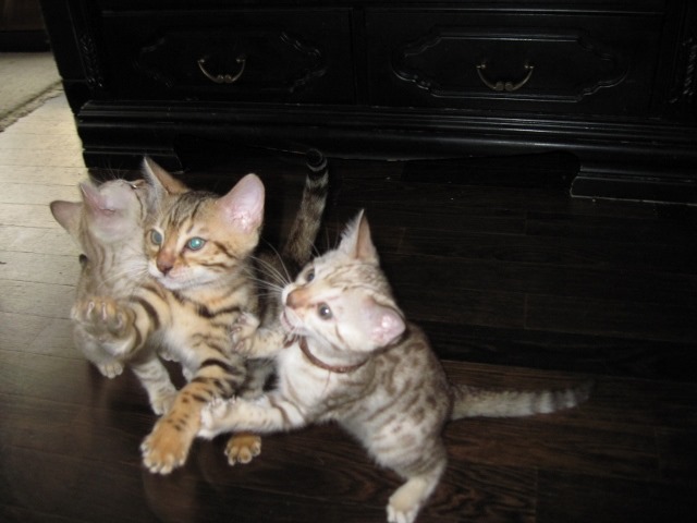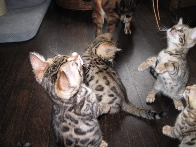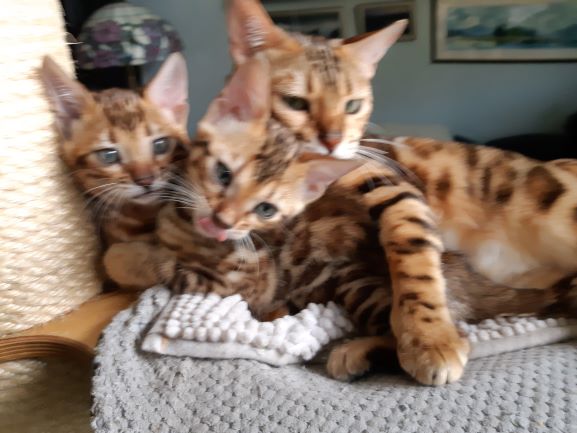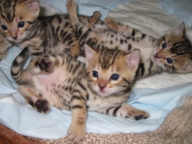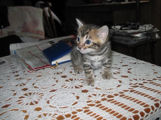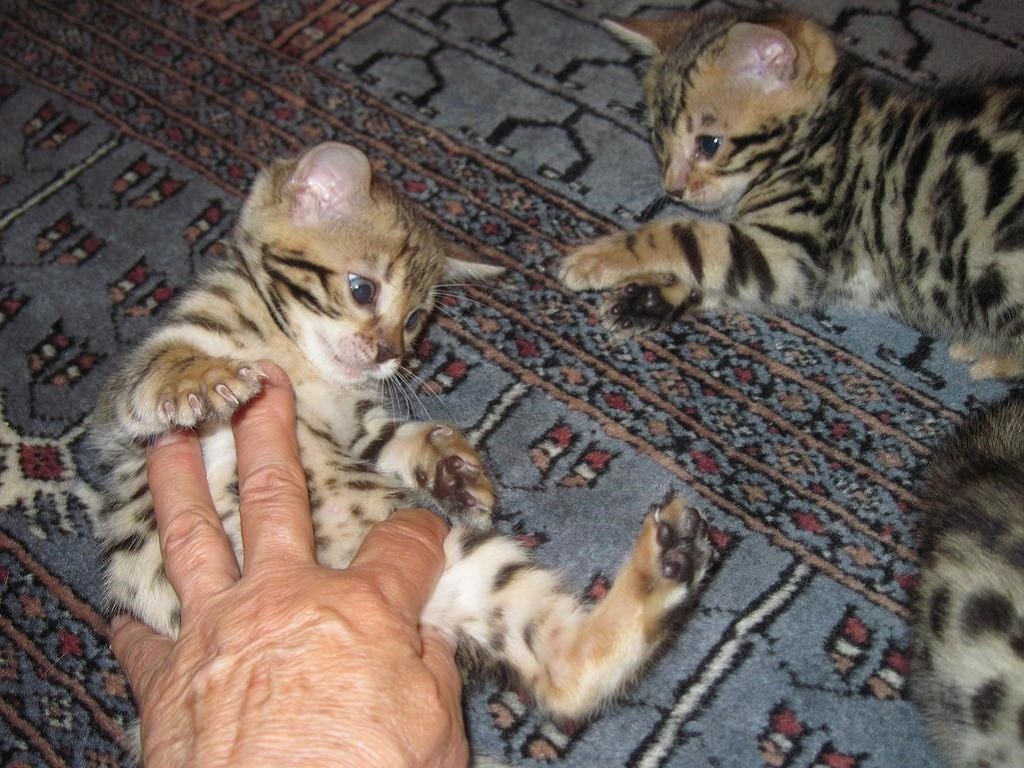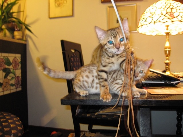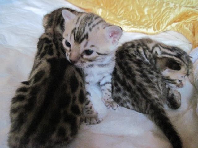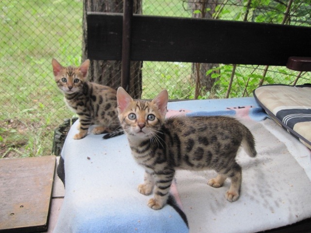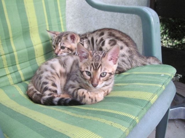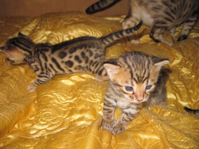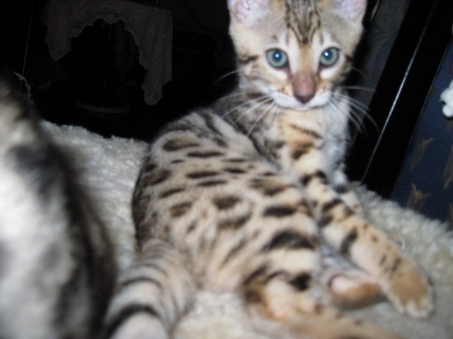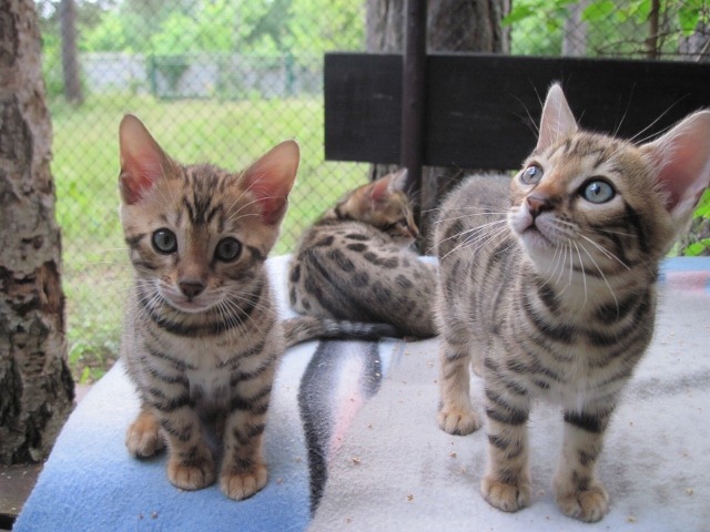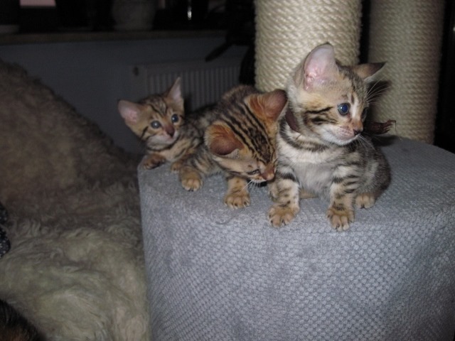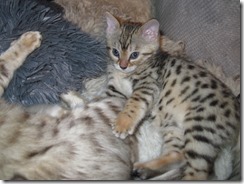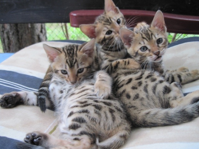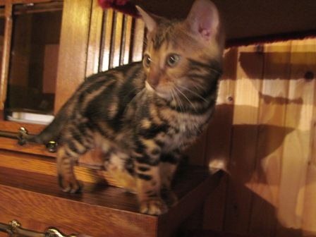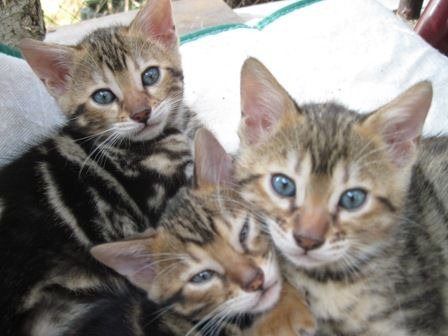 Moje koteczki Dolly i Clinia urodziły w lutym i marcu 2013 kocięta. Są trzy dziewczynki i dwóch chłopców. Maść kociąt to black marbled i brown spotted. Ojcem kociąt jest Europejski Champion /S.C./ Tamleopardens Divine, pochodzący z wiodącej linii skandynawskiej; natomiast ojcem koteczek jest CH Mountainpark Sunshine, co oznacza, że kocięta wywodzą się z doskonałych linii – kanadyjskiej i skandynawskiej.