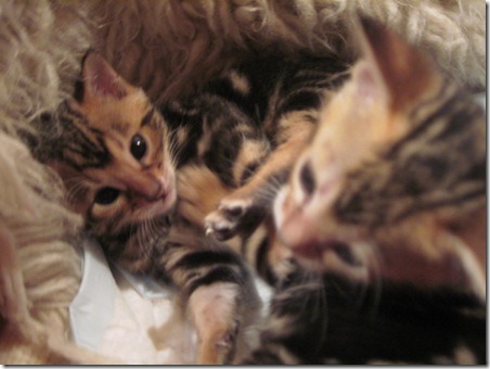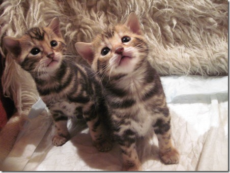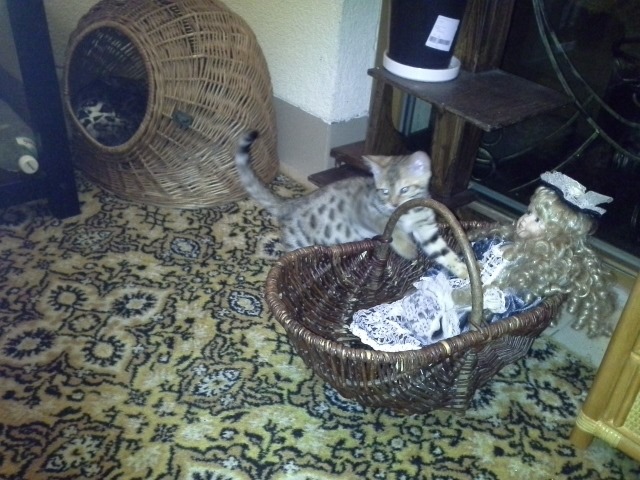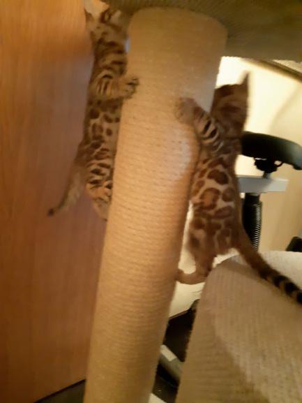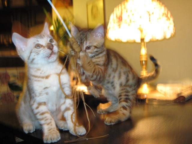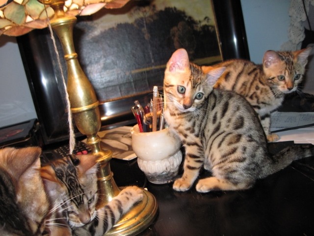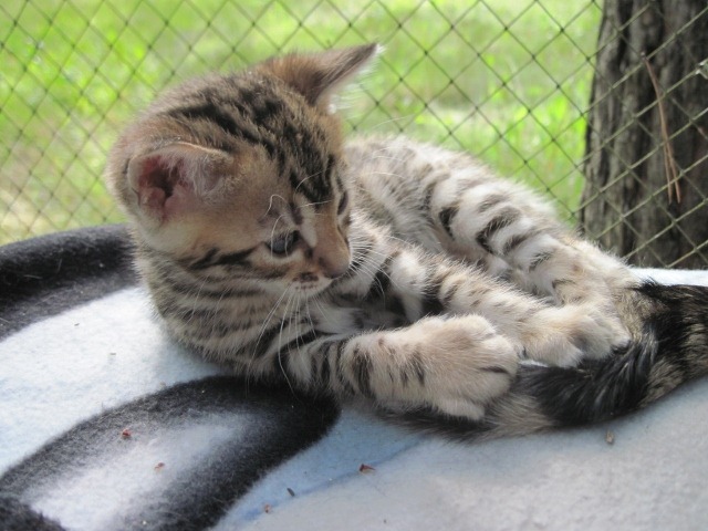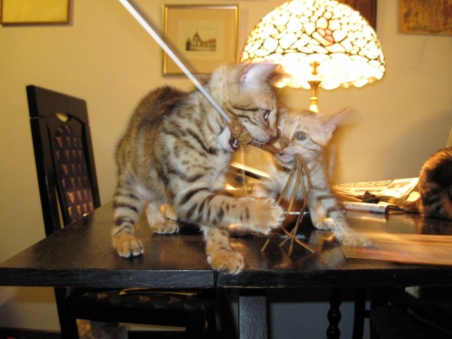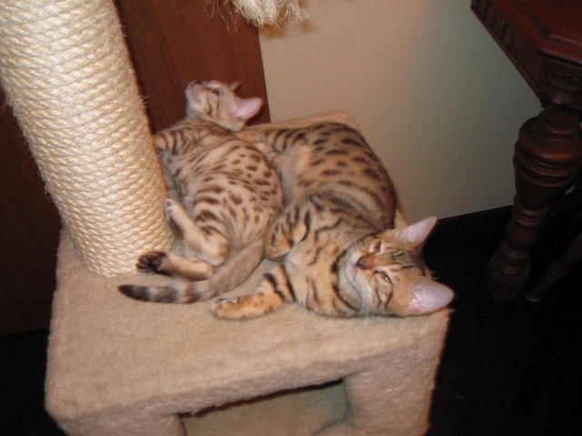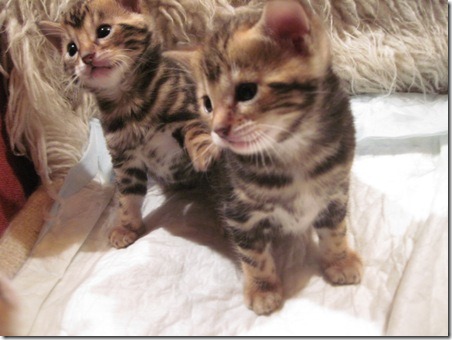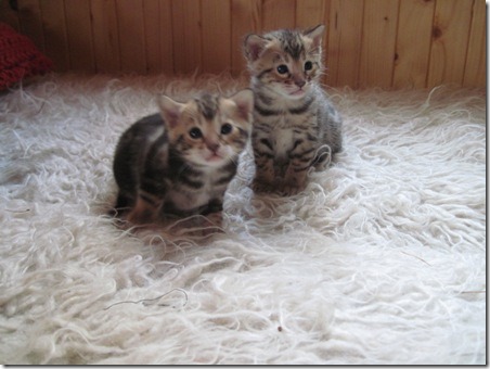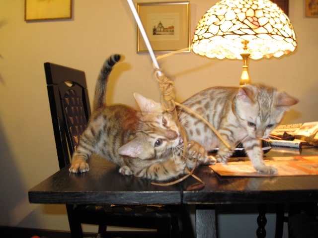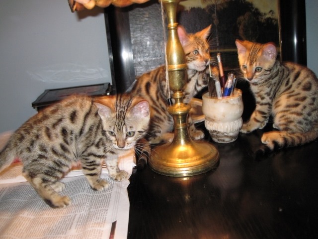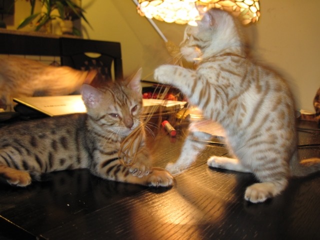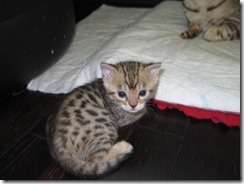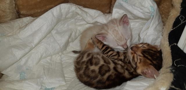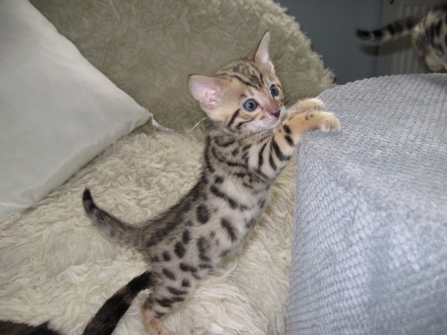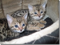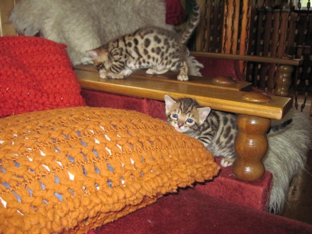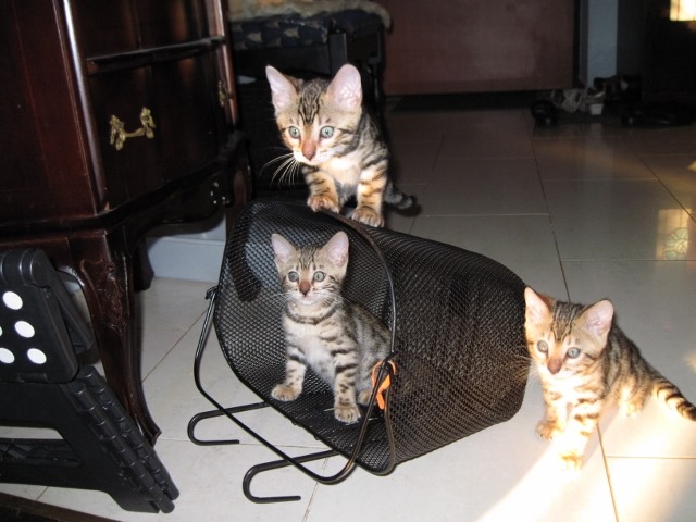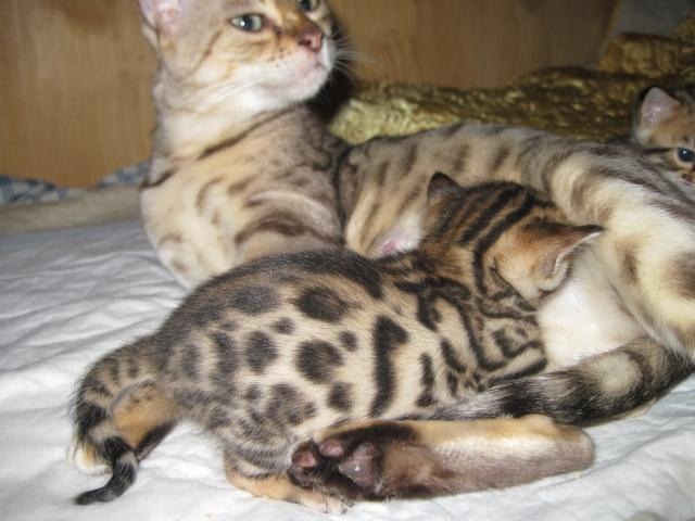 Moje koteczki Dolly i Clinia urodziły w lutym i marcu 2013 kocięta. Są trzy dziewczynki i dwóch chłopców. Maść kociąt to black marbled i brown spotted. Ojcem kociąt jest Europejski Champion /S.C./ Tamleopardens Divine, pochodzący z wiodącej linii skandynawskiej; natomiast ojcem koteczek jest CH Mountainpark Sunshine, co oznacza, że kocięta wywodzą się z doskonałych linii – kanadyjskiej i skandynawskiej.