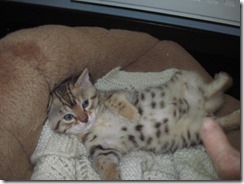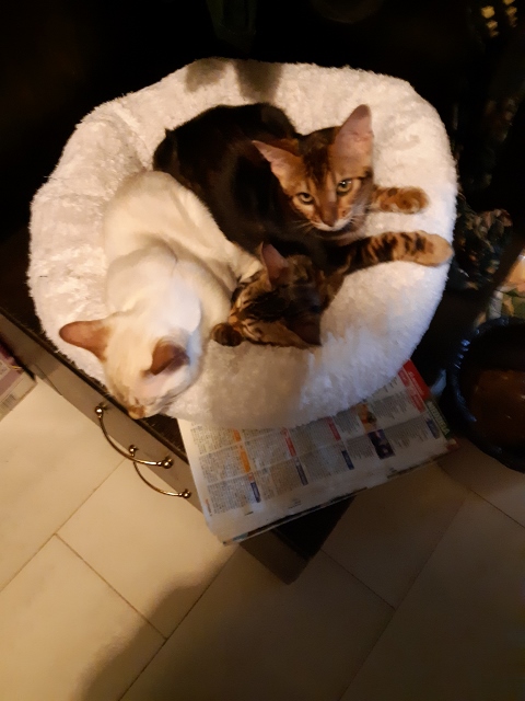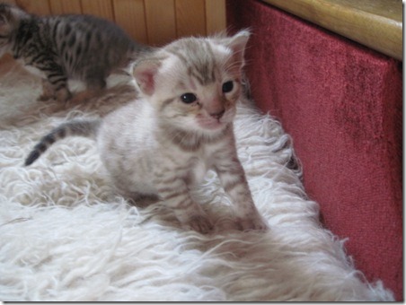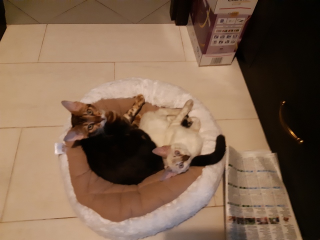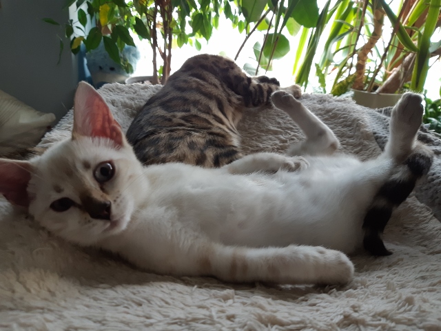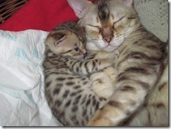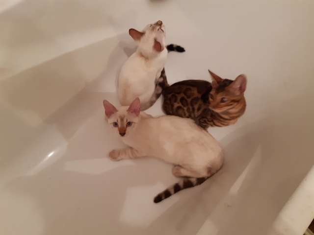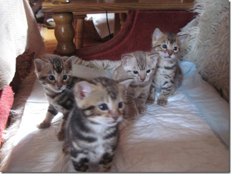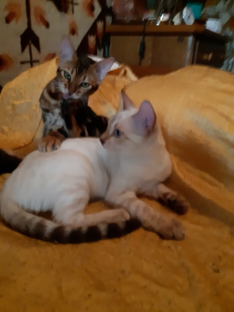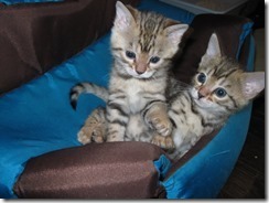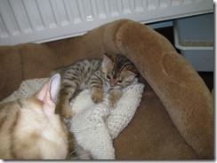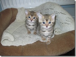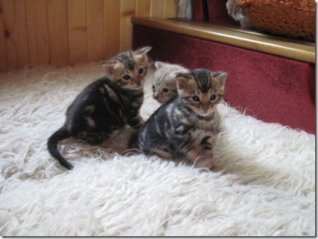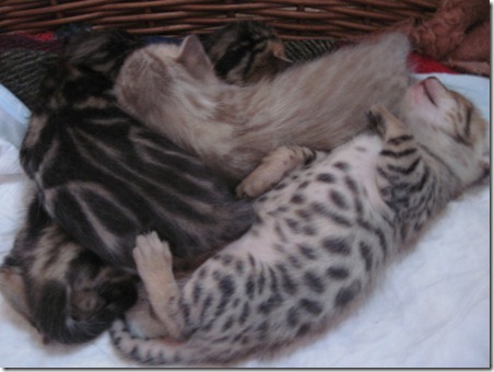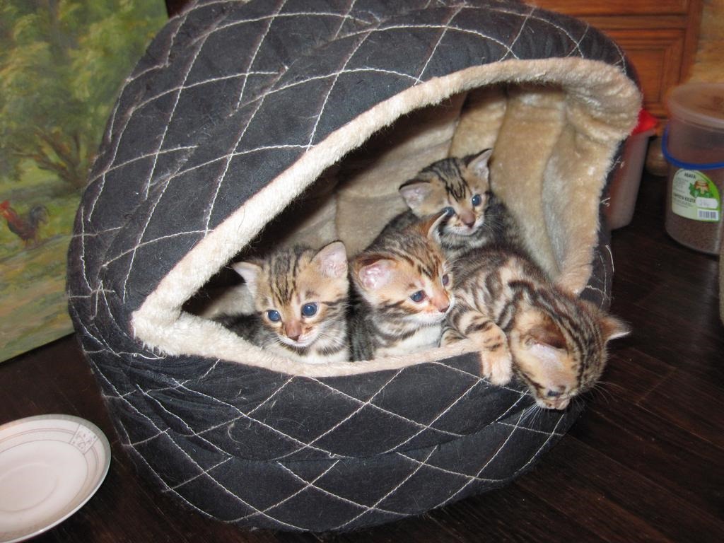 W sierpniu 2011 roku moja koteczka CH Odessa Euforia została szczęśliwą mamą czterech kociat. Ojcem kociąt był, tak jak w latach poprzednich, CH Mountainpark Sunshine. Urodziły się dwie koteczki (maści seal mink spotted i black marbled) oraz dwa kocurki (maści brown spotted i black marbled). Kocięta są pięknie wybarwione, maść o dużym kontraście.