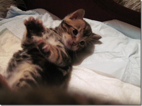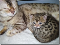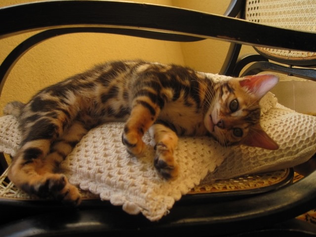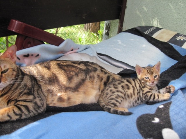 1 sierpnia 2012 roku mamą została córeczka Odessy Euforii, Clinia Felicity Cat’s*Pl przybyła do nas na wiosnę tego roku. Urodziły się trzy kocięta, dwie koteczki i jeden kocurek. Tatą kociąt jest CH Azanabengals Angel Heart Schelwood. Wszystkie kocięta są doskonale wybarwione, maści w rozety.
