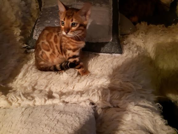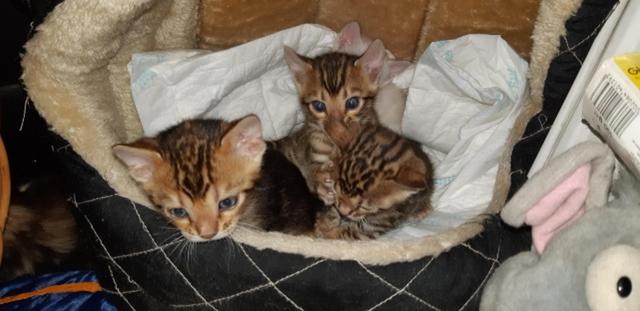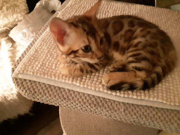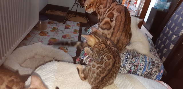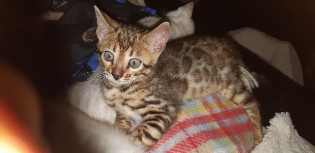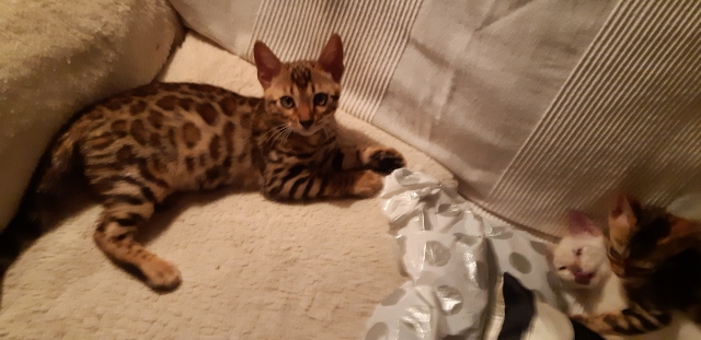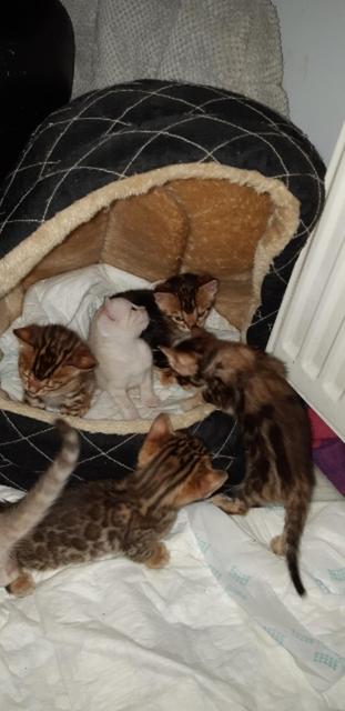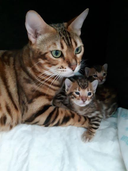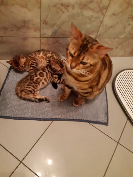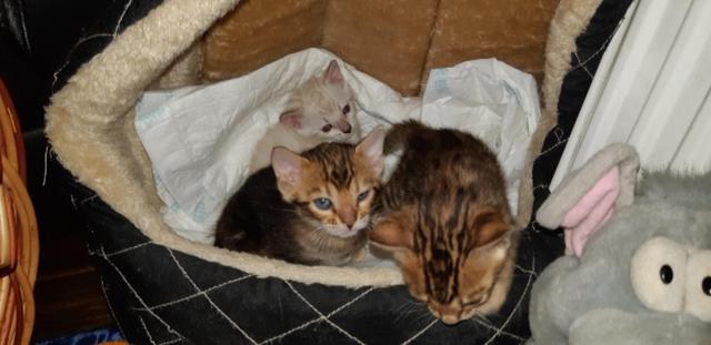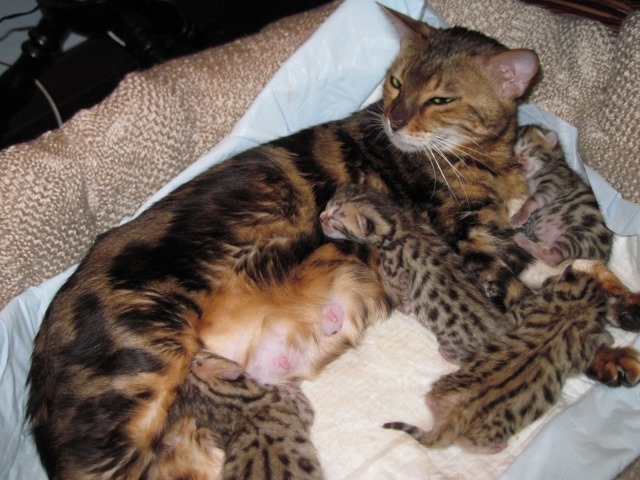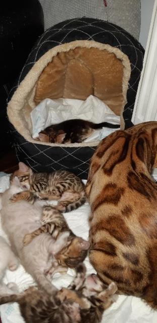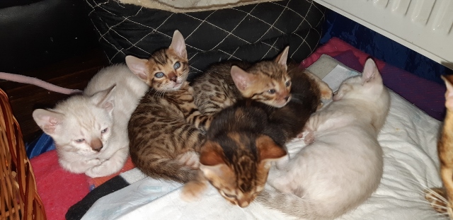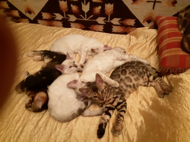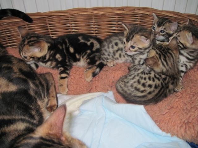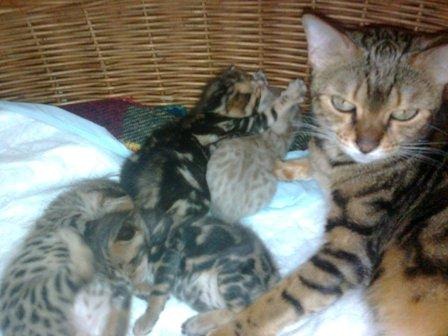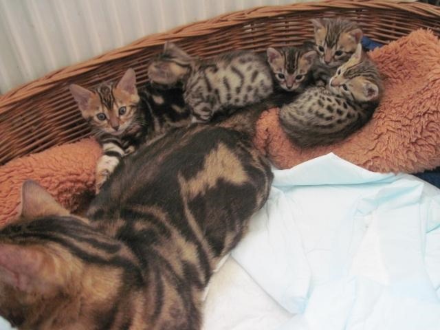 Koteczka Jennifer Schelwood została mamą w dniu 28 lipca. Urodzily się dziewczynki i chłopcy o imionach: Celia, Clivia, Charlie, Cezar, Chester. Ojcem kociąt był Maca Caesar. Umaszczenie kociąt to piękne rozety.