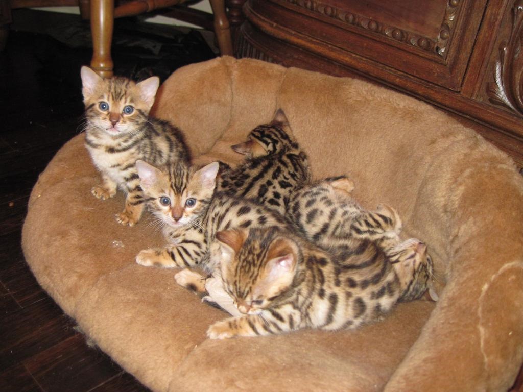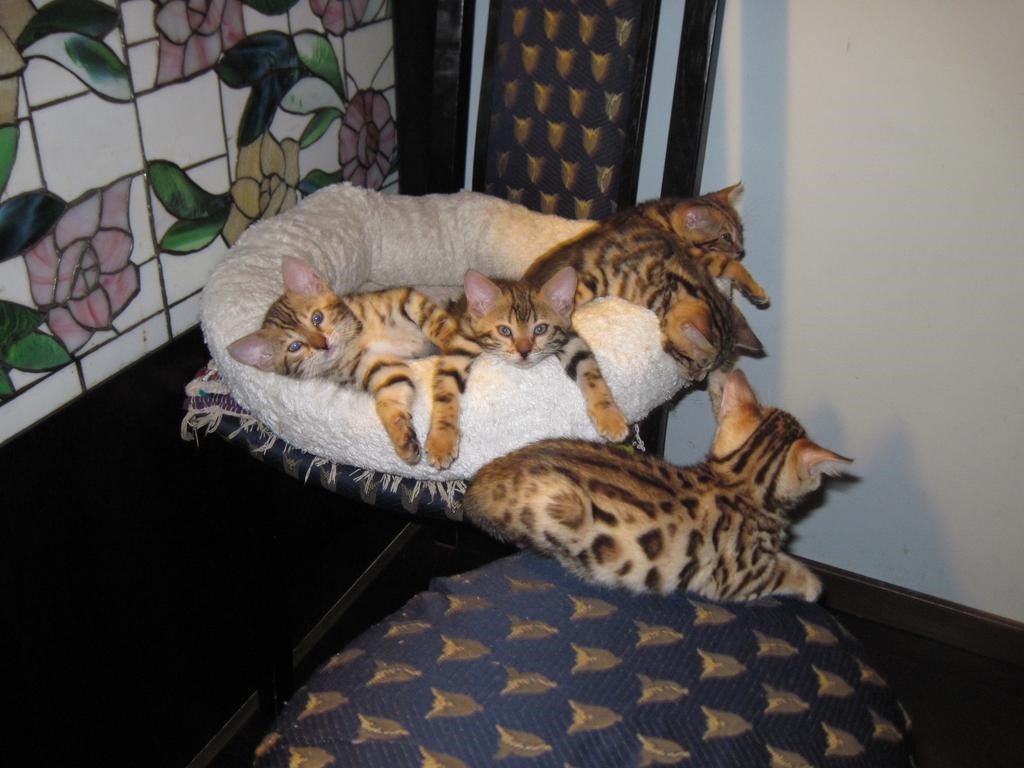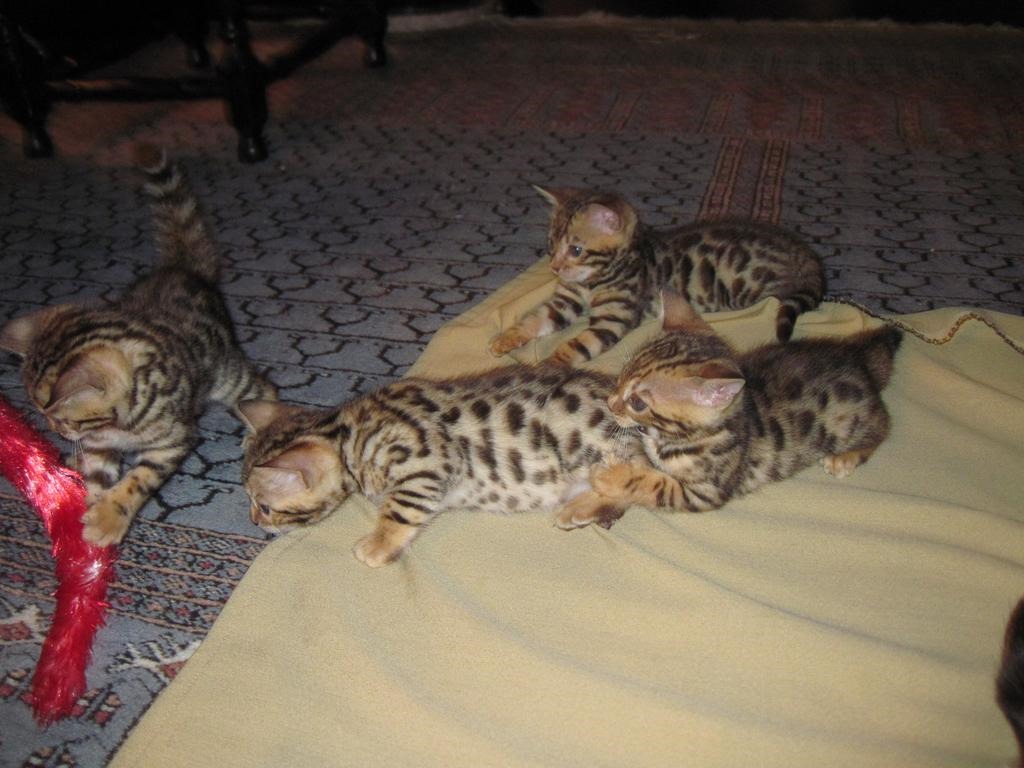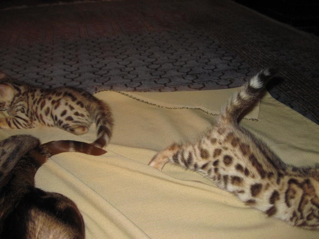 Ojcem kociąt jest CH Azanabengals Angel Heart Schelwood, pochodzący z jednej z wiodących linii kanadyjskich, specjalizujących się w rozetowych bengalach.