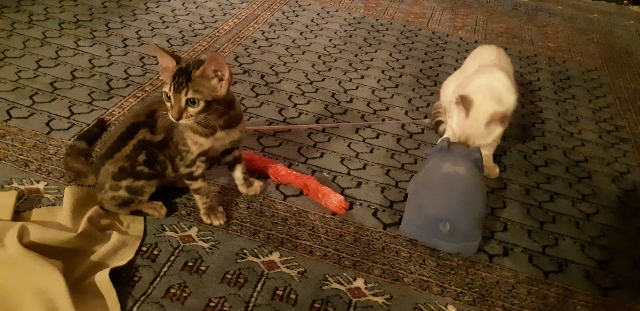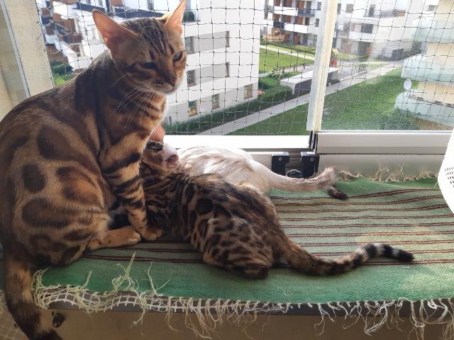 5 marca 2016 koteczka Clinia urodziła dwa kocięta: dziewczynkę i chłopca. Kocięta są maści BEN 24 brown spotted, w rozety. Ojcem kociąt jest COYOTE A-MURR*UA mający aktualnie tytuł International Champion. Wśród bliskich przodków Coyota są koty pochodzące m.in. z wiodącej linii kanadyjskiej Azanabengals. Kociaki mają już doskonały kontrast i wyraziste rozety.