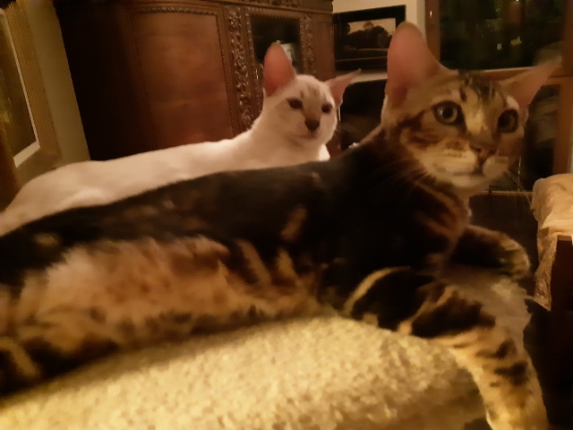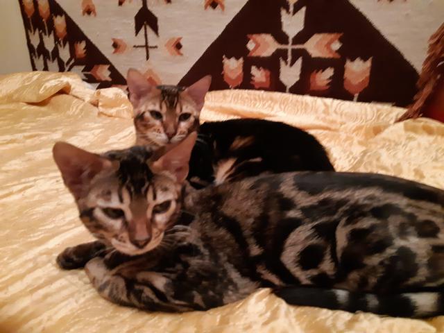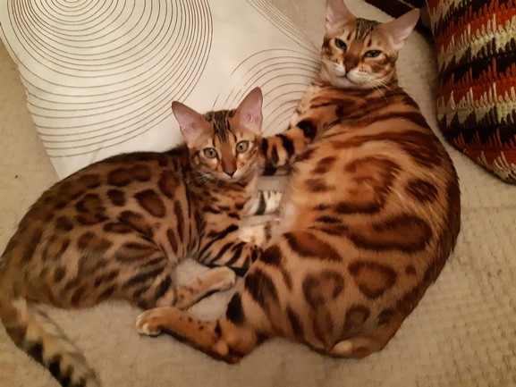 Ostatniego dnia lutego 2015 koteczka Clinia urodzila dwie dziewczynki. Kocięta są maści BEN 24 seal mink spotted, w rozety. Ojcem kociąt jest COYOTE A-MURR*UA mający aktualnie tytuł International Champion. Wśród bliskich przodków Coyota są koty pochodzące m.in. z wiodącej linii kanadyjskiej Azanabengals.