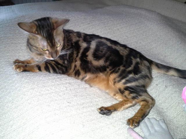Koteczka jest maści seal mink spotted (cętkowany bengal śnieżny), bardzo rzadkiej maści w Polsce. Futerko jej jest niezwykle jedwabiste, z przepięknym połyskiem (glitterem).