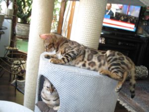 W czerwcu 2017 przybyły do mojej hodowli dwie koteczki ze znanej i uznanej hodowli kotów bengalskich Schelwood *PL.: jedna z kotek o imieniu Jennifer urodziła się w marcu, a druga Chantal – w styczniu. Koteczki są pięknie umaszczone w trójkolorowe rozety, przede wszystkim jednak koteczki pochodzą z wiodących linii kanadyjskich, amerykańskich i europejskich, co niewątpliwie będzie miało istotny wpływ na cechy dzieci koteczek, w tym charakteru, umaszczenia i budowy.